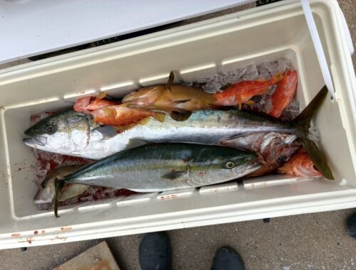 fishing S様(DFR36FB)釣果 2025.11.26 釣果 11/22(土)マリーン博多に届いたS様の釣果報告です! 🐟:ヒラマサ、コシナガ、ネリゴ、タイ、サバ、アオハタ、アコウ🚢:DFR36FB S様、おめでとうございます✨